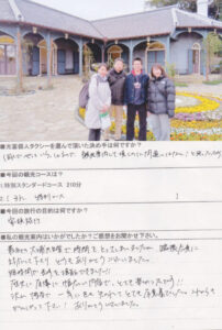 この度は光富個人タクシーをご利用いただき、また温かいご感想をありがとうございました。楽しく、安心して、観光していただけたとのお言葉、大変励みになります。お客様との出会いに心より感謝しております。次回もぜひ長崎の魅力をご案内させてください!(光富)