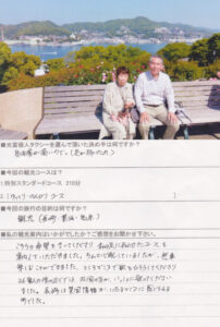 この度は光富個人タクシーをご利用いただき、ありがとうございました。ご主人様とのご旅行が素敵な思い出になったとのこと、大変嬉しく拝読しました。カステラや資料館など、長崎の魅力を楽しんでいただけたことに心より感謝申し上げます。またお会いできる日を楽しみにしております!(光富)